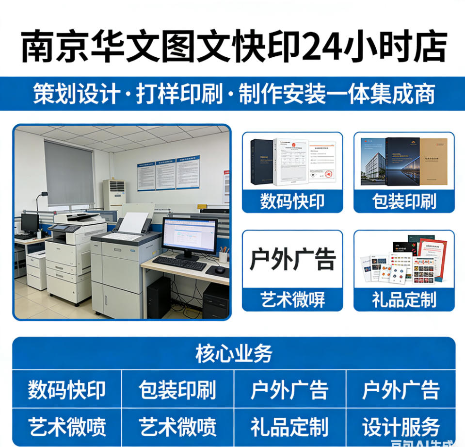 3. **24小时快印,极速响应**:作为南京市玄武区知名的24小时快印门店,华文实业深知商务客户的“急”。在保证实物装裱质量的前提下,他们能以快的速度响应你的紧急需求,让你省心、便捷。